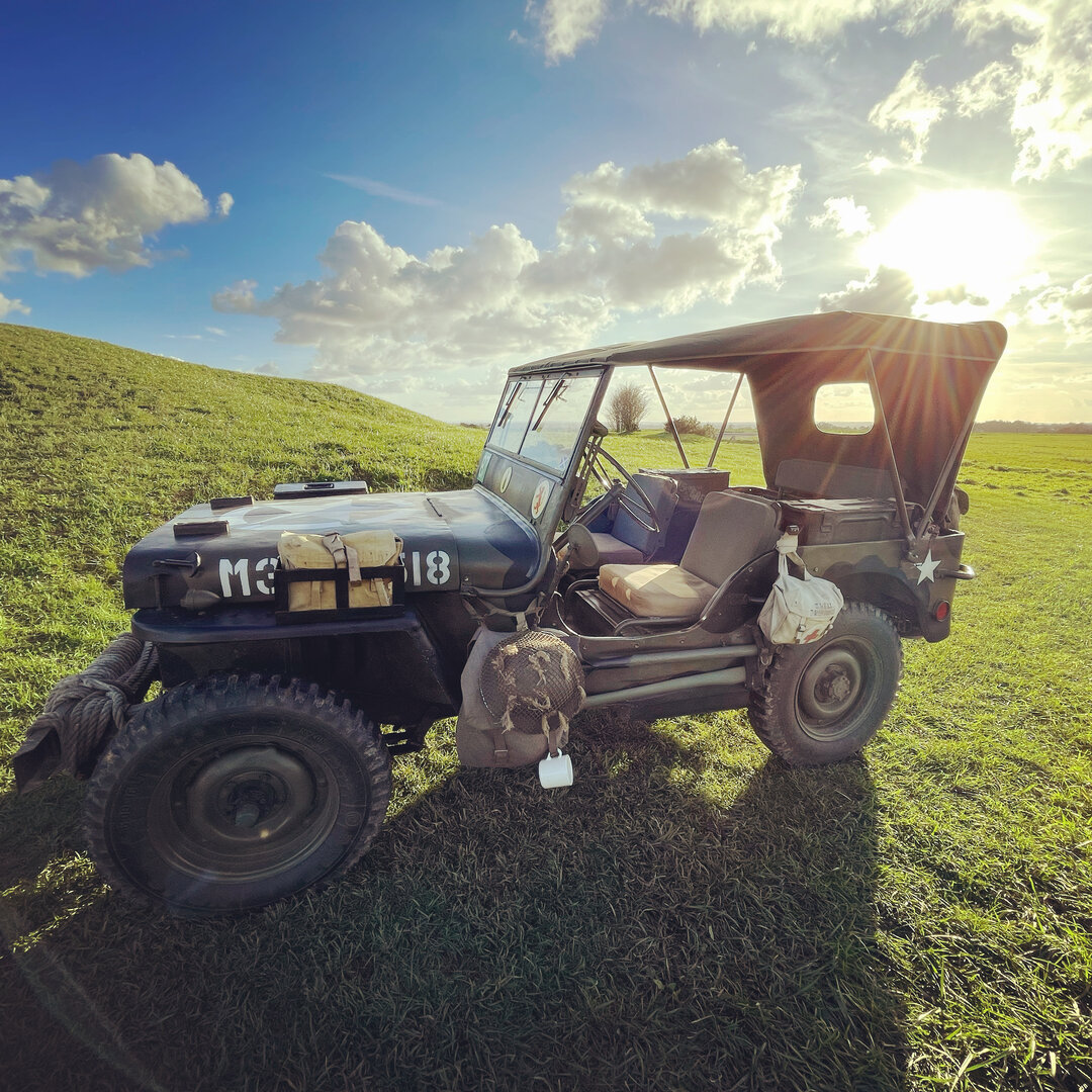Ein Sportboot liegt an einem Anleger neben einer Wiese Eine Kamera liegt auf einer Mauer aus Stein Ein Foto einer Brücke bei Nacht Ein Willys Jeep steht in der Abendsonne auf einer Wiese Ein Sportboot liegt an einem Anleger neben einer Wiese Ein leckeres Schaschlik, Pommes & ein kühles Bier